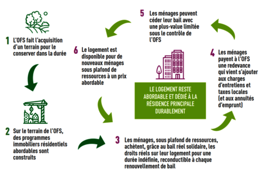 Mis en place par l'OFS de Plaine Commune, créé en 2022 par l'office HLM Plaine Commune Habitat et sa Coopérative d'accession à la propriété (la CAPS), le Bail Réel repose sur un principe simple : dissocier la propriété du bâti et celle du foncier d'un logement. Ainsi l'acheteur acquiert les droits réels sur un logement dont il devient pleinement propriétaire pour une très longue durée pouvant aller jusqu'à 80 ans. Dans le même temps, il devient locataire du terrain (le foncier) sur lequel il est bâti, via une redevance à payer chaque mois à l'OFS. Un outil innovant actuellement développé dans plusieurs villes de Plaine Commune (voir ci-dessous) et qui doit permettre aux ménages respectant un plafond de revenus d'accéder plus facilement à la propriété sur un territoire touché par une augmentation sensible des prix de l'immobilier ces dernières années.