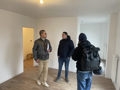 Une résidence flambant neuve en plein coeur du quartier du Landy à La Plaine Saint-Denis ! C'est ce qu'ont pu découvrir en début de semaine, Sam Bentounsi et Thierry Mimouni, nouveaux propriétaires de logements dans cet immeuble construit par Plaine Commune Habitat comportant 44 appartements (allant du studio au T4) dont 22 le sont en accession sociale à la propriété via le Bail Réel Solidaire (BRS). En acquérant un appartement au sein de la résidence Les Météores, ils deviennent ainsi les premiers bénéficiaires de ce dispositif sur le territoire.