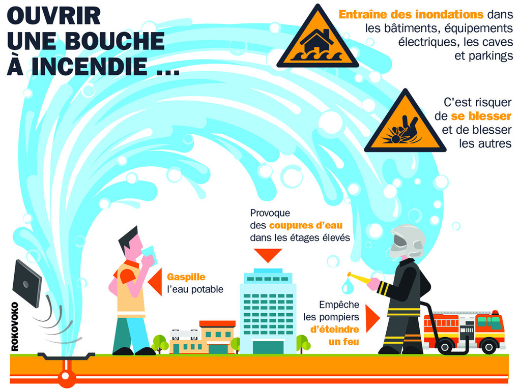 L'ouverture des bouches à incendie par toute personne autre que les secours publics est par ailleurs totalement interdite et passible de 3 ans d’emprisonnement et de 45 000 € d’amende