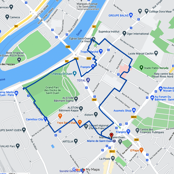 Ce quartier est amené à devenir après les Jeux un nouveau quartier de vie avec des espaces publics végétalisés, apaisés et accessibles à tous les Audoniens. Après un départ prévu au niveau du centre administratif et social Fernand Lefort, vous longerez la Manufacture Design, construite dans l’une des anciennes halles historiques d’Alstom, puis le grand parc des Docks de Saint-Ouen et ses 12 hectares d’espaces verts en bordure de Seine, venus réhabiliter cet ancien quartier industriel aux portes de Paris. Le parcours, prenant la forme d’une boucle vous fera enfin passer par l’église de Saint-Ouen-le-Vieux construite au XIIème siècle, avant de revenir à votre point de départ.