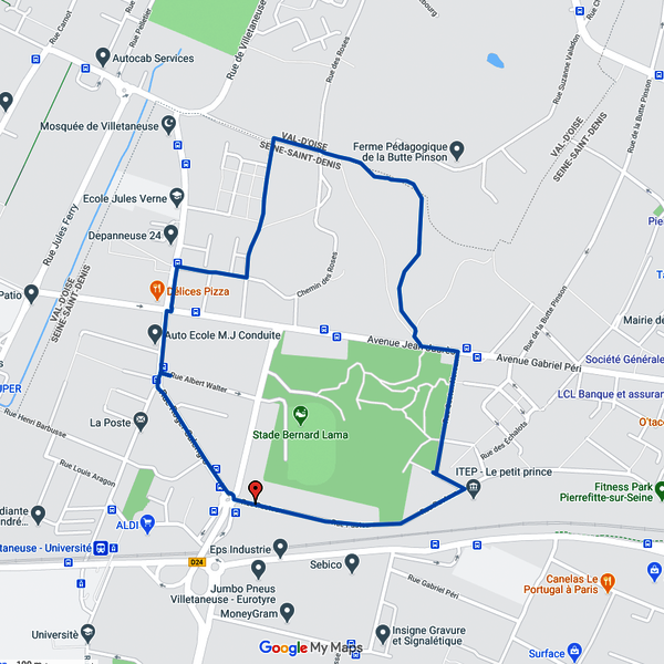 Pour réaliser ce parcours d’un peu moins de 3 km, vous prendrez le départ au niveau du stade Bernard Lama, puis passerez devant la médiathèque Jean Renaudie et l’école Jules Verne. Vous traverserez ensuite le parc naturel régional de la Butte Pinson sur les hauteurs boisées de la commune, labellisé espace vert écologique, garantissant ainsi une gestion éthique et écologique du site. La fin du parcours vous fera enfin passer devant l’Institut thérapeutique éducatif et pédagogique (ITEP) “Le Petit prince”.