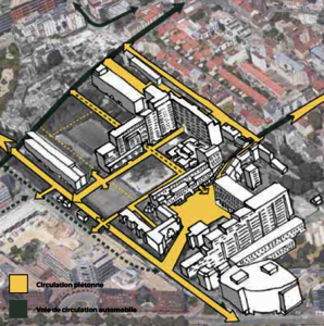 Les différentes études menées et les échanges avec les habitants ont souligné que de nombreux éléments urbains segmentent les espaces du quartier : clôtures, murs, végétations barrières... Ces éléments contraignent les chemins et sont comme des cloisons qui gênent la bonne circulation dans l’espace public. L’objectif des aménagements à venir est donc d’ouvrir le quartier sur le reste de la ville et de rétablir des connexions avec les quartiers voisins.