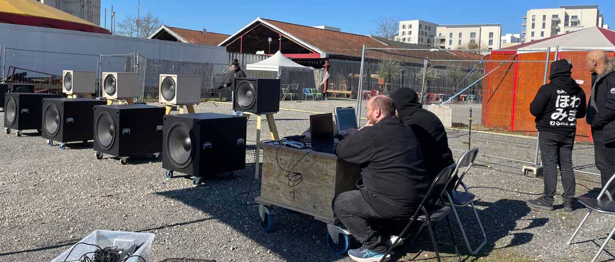 Tests sonores pour optimiser la directabilité du son sur le site. / Crédit photo : Le Point Fort d'Aubervilliers