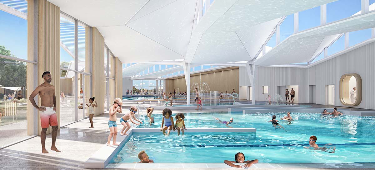 Construit à la place de l’ancienne piscine municipale, le nouveau centra aquatique comprendra :