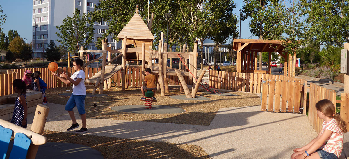 Les aires de jeux de Plaine Commune proposent des formes de jeux collectifs qui contribuent à l’épanouissement comme à la santé des enfants. Ils peuvent développer leur motricité, leur imaginaire, leur intellect, tout en renforçant leur relation aux autres et leur confiance en eux.
